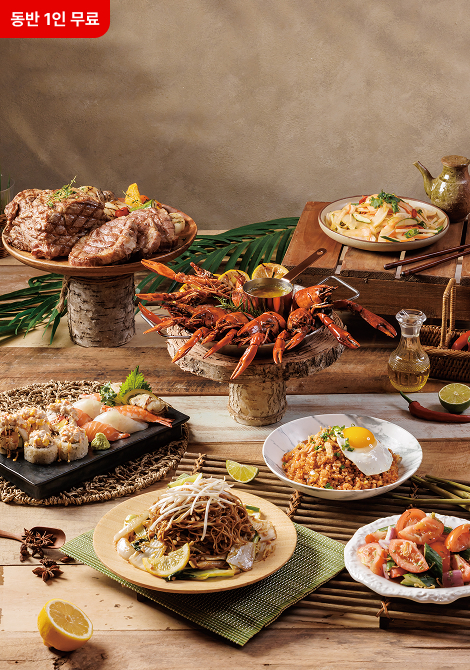 아시아 각국의 대표 메뉴와 다채로운 샐러드, 디저트, 커피